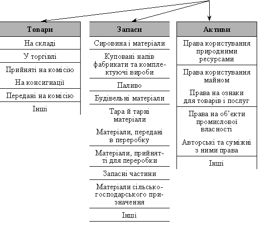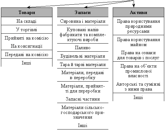 Саме тому пропонується вищенаведена класифікація запасів, товарів, інших активів.