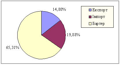 Питома вага експортних, імпортних та бартерних операцій у 2000 р., (%):
