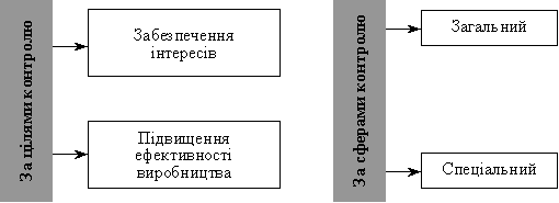 Рис. 4.2. Класифікація форм контролю за цілями та сферами