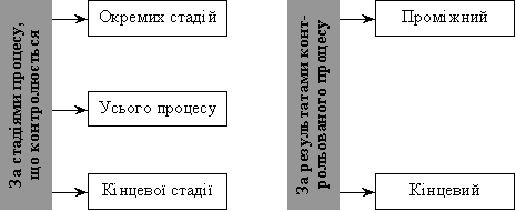 Кожний процес можна поділяти на окремі його стадії, і відповідно його контролювати. Також можна вести контроль відповідно до результатів контрольованого процесу. Тоді пропонується така класифікація (див. рис. 4.4).